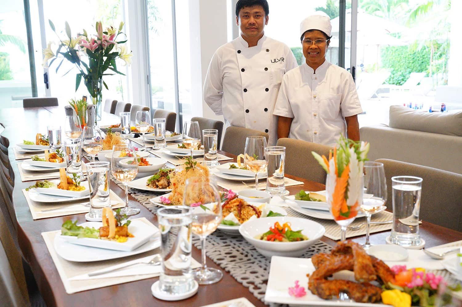 We only use experienced and talented professional chefs, who prepare delicious food (both Asian and International cuisine) to the highest standards. Our chefs are just as happy working in a 5-star restaurant kitchen or giving you a 5-star lunch and dinner experience at the villa.