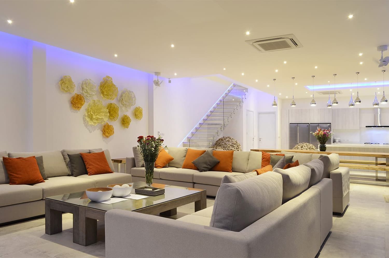 - 75-inch HD smart TV, with HD DVD player in living room with 300+ international channels and extensive 20,000+ movie library, of classic, latest and family films. In addition all bedrooms also have large HD TVs with 300+ international channels.